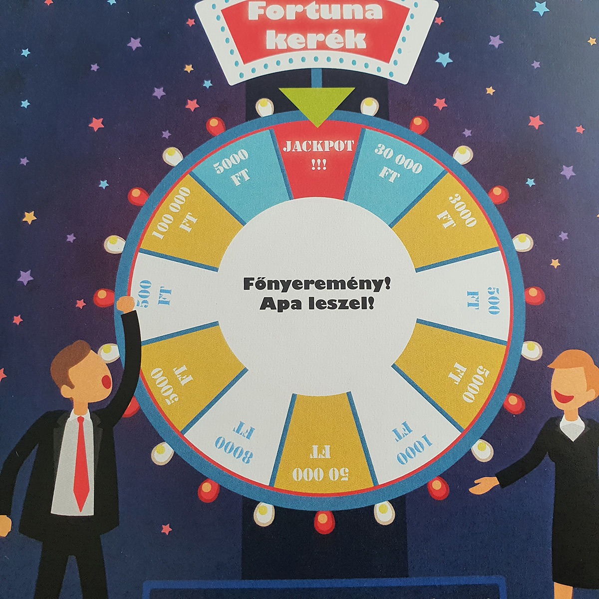 Születésnap, névnap, kerek évfordulók, ballagás, diplomaosztó, vagy akár egy unalmas hétköznap feldobása – Fortuna kereke bárhol, bármikor képes mosolyt és izgalmat csalni az arcokra.