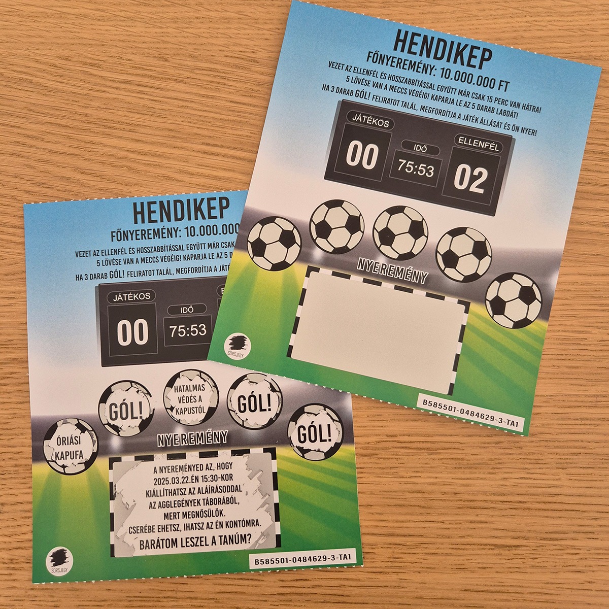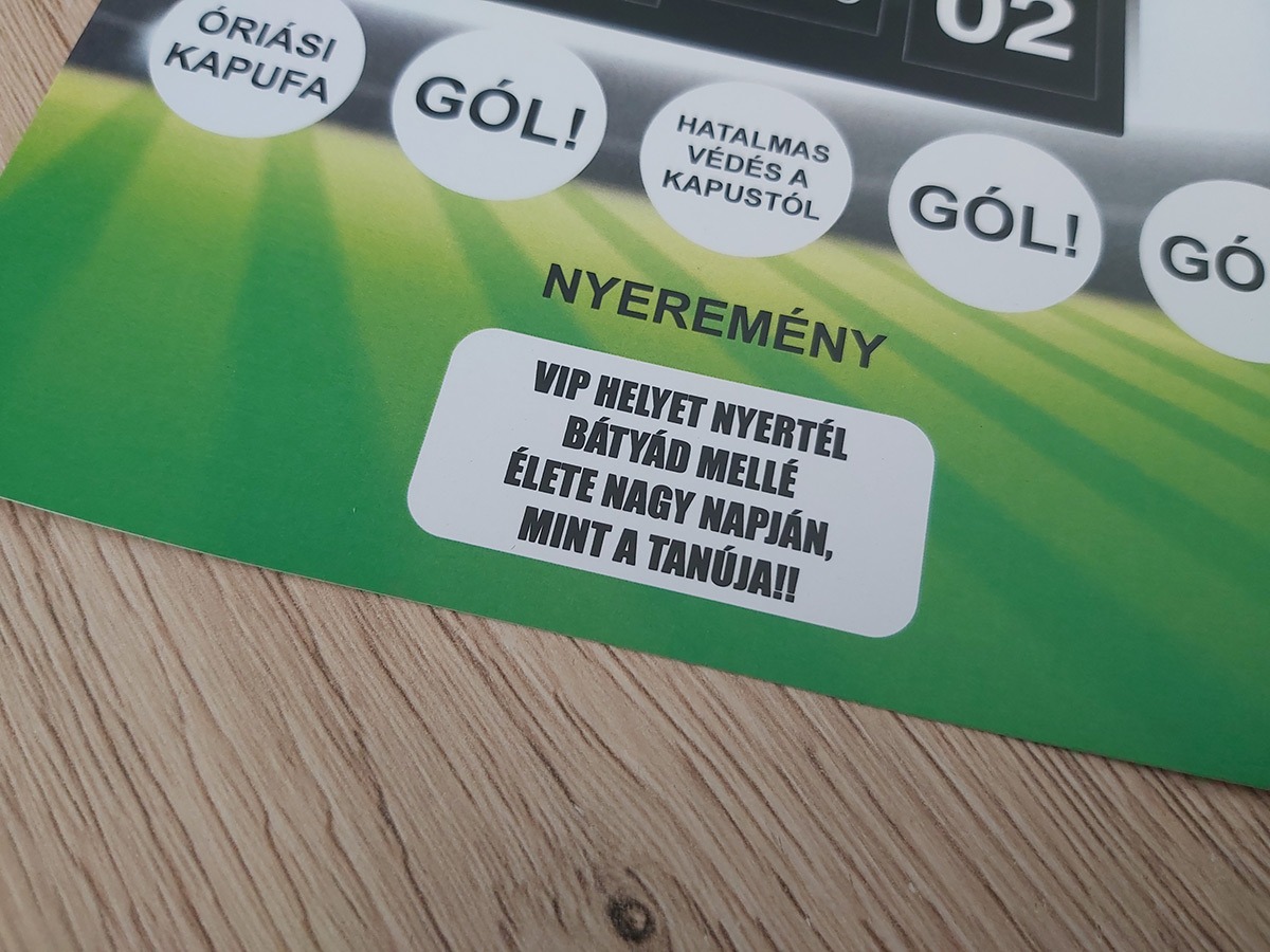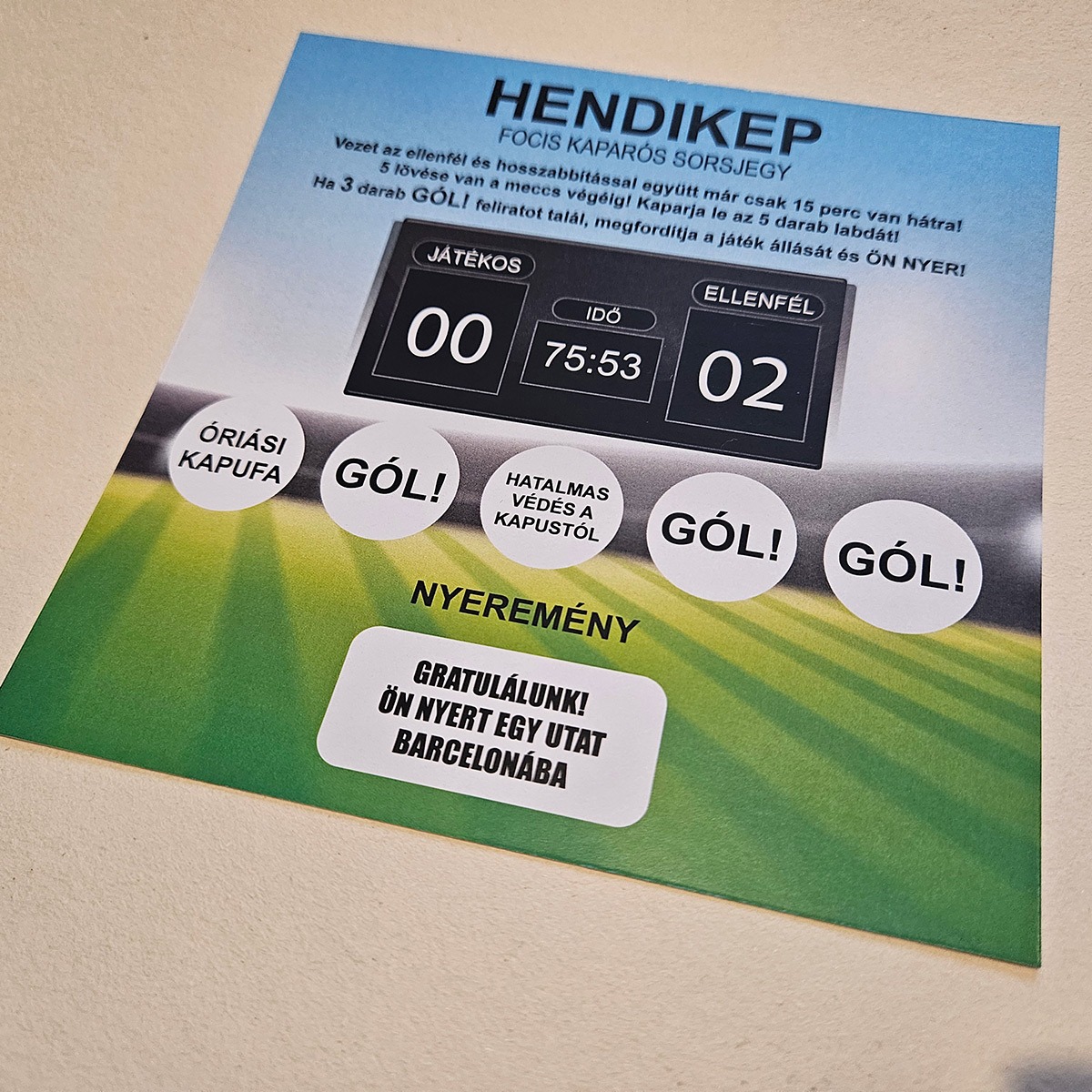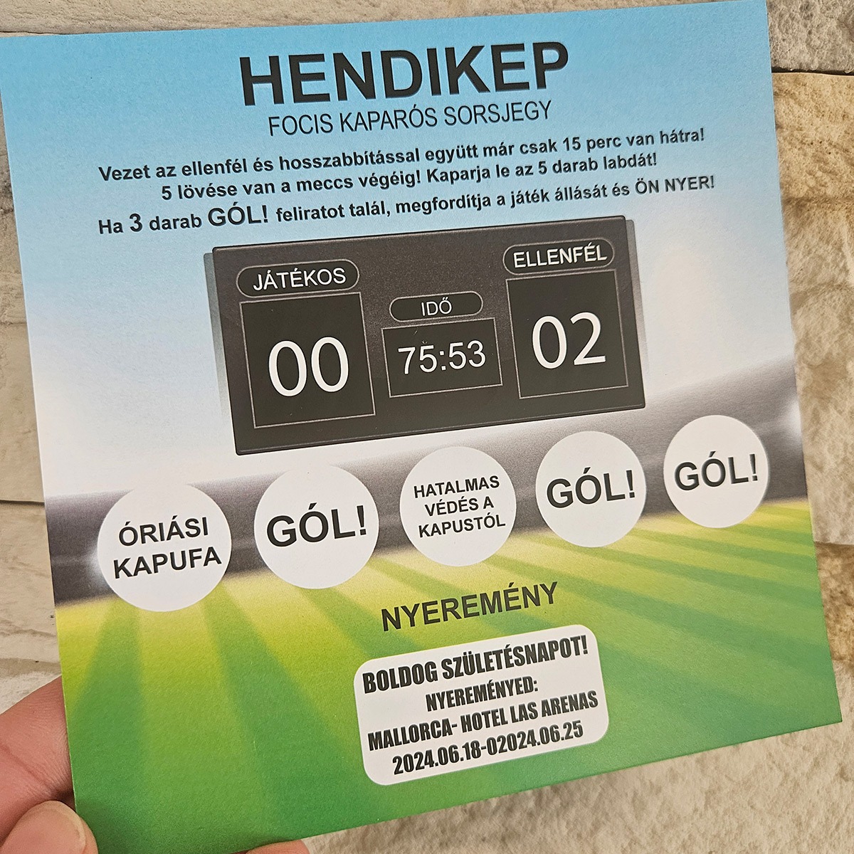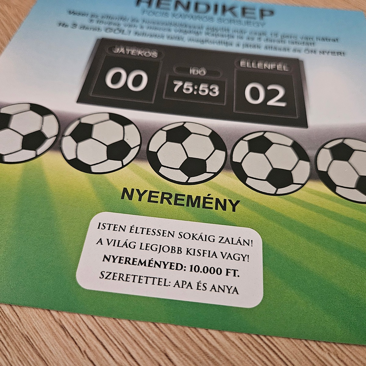 ⚽ Hendikep focis egyedi kaparós sorsjegy ajándék – Legyél Te a meccs embere!