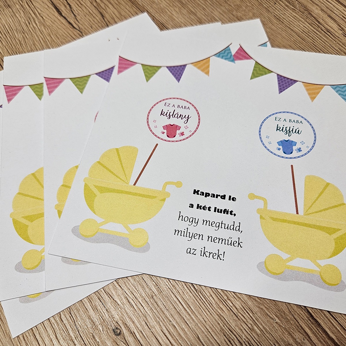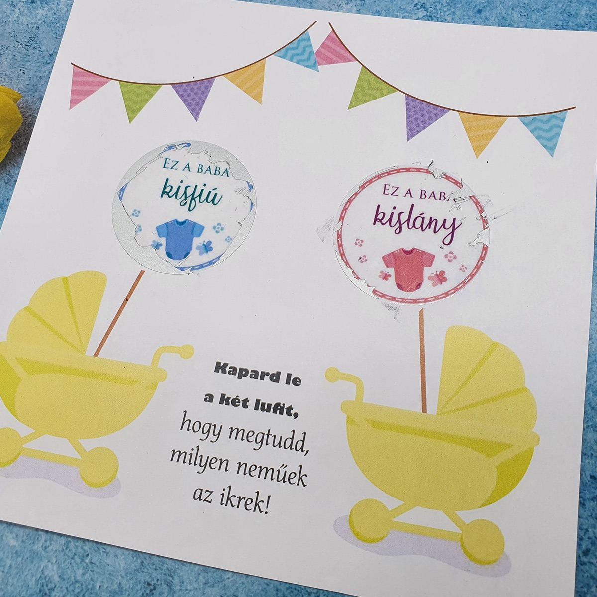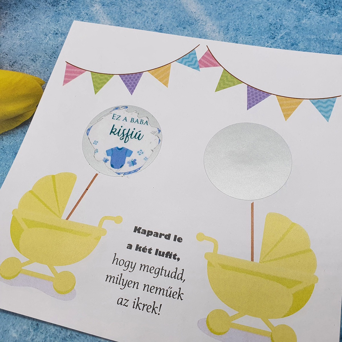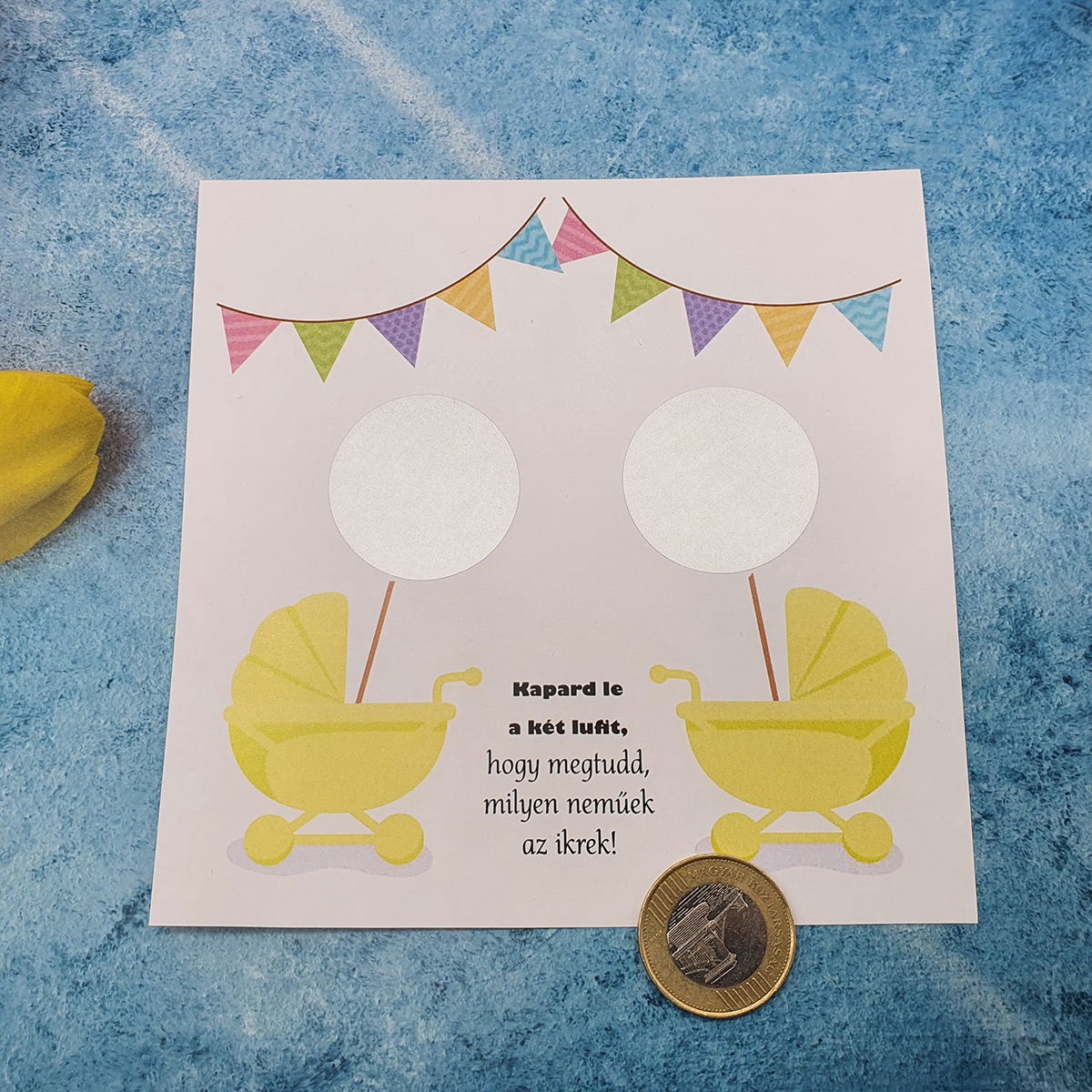 👯 Iker bababejelentő egyedi kaparós sorsjegy ajándék – Dupla meglepetés!