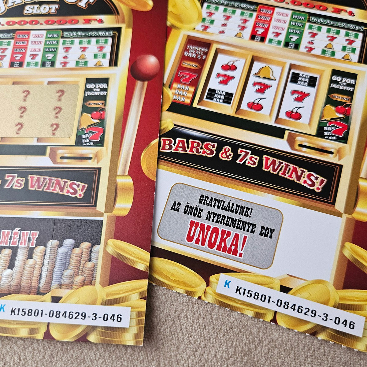 Ultra-realisztikus részletek: CSAK NÁLUNK! 🔥 A KAPARÓS FELÜLETEN IS GRAFIKA VAN, MINT A VALÓDI KAPARÓS SORSJEGYEKEN!!!🏆 Kétoldalas kivitel játékleírással, esélytáblázattal, QR-kóddal és vonalkóddal a hátoldalon. 📄