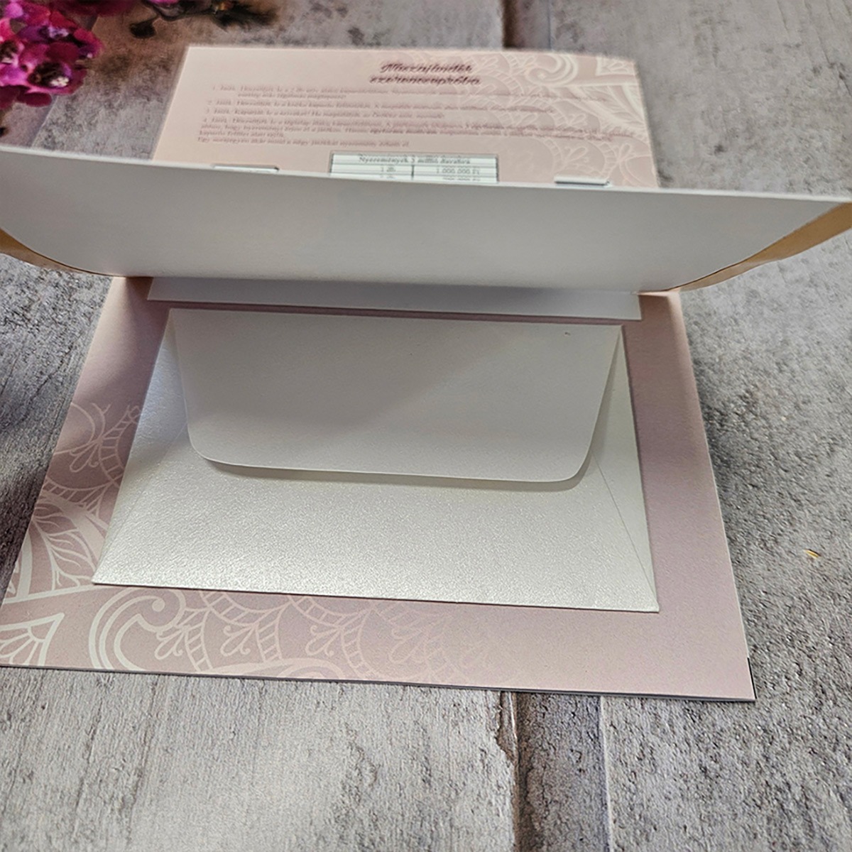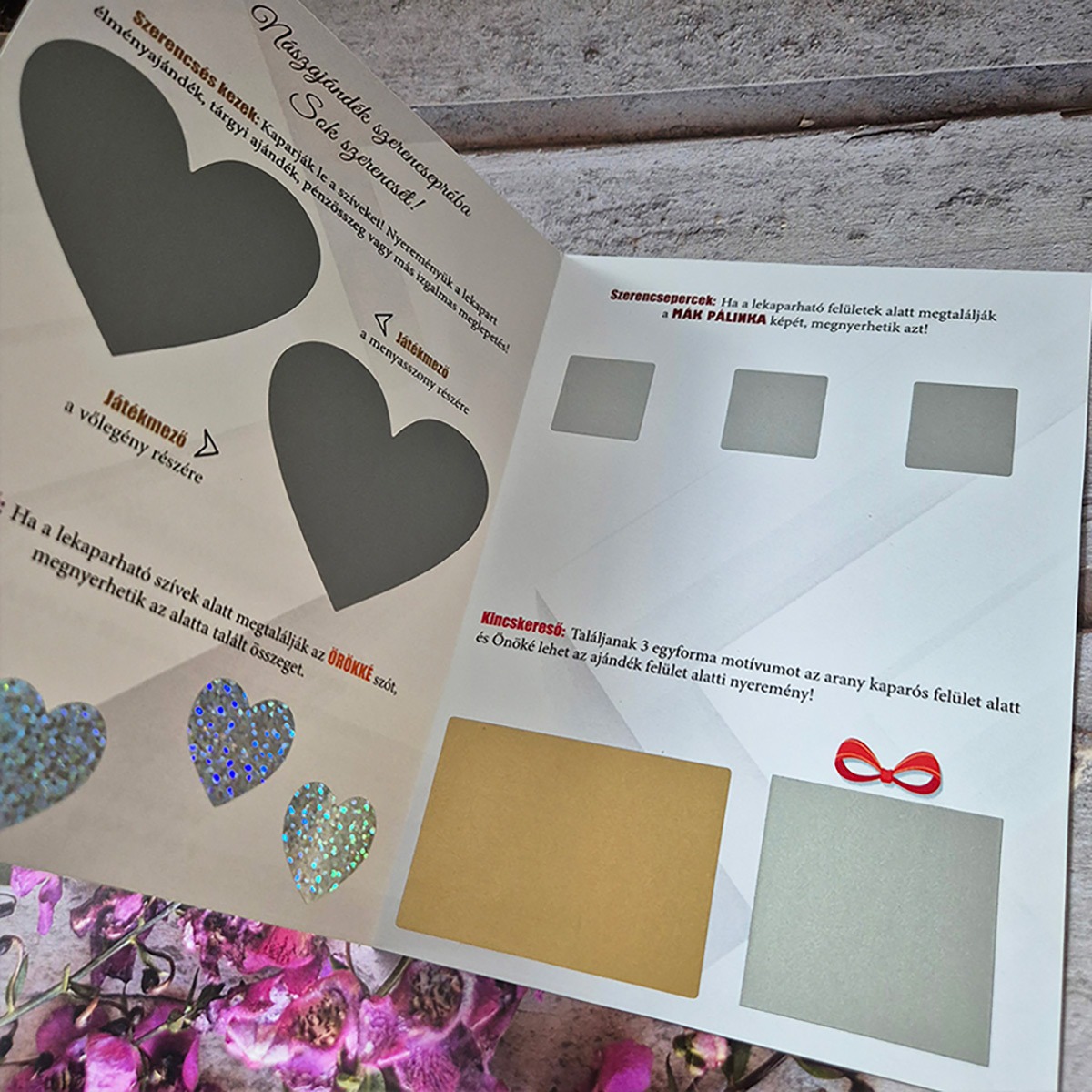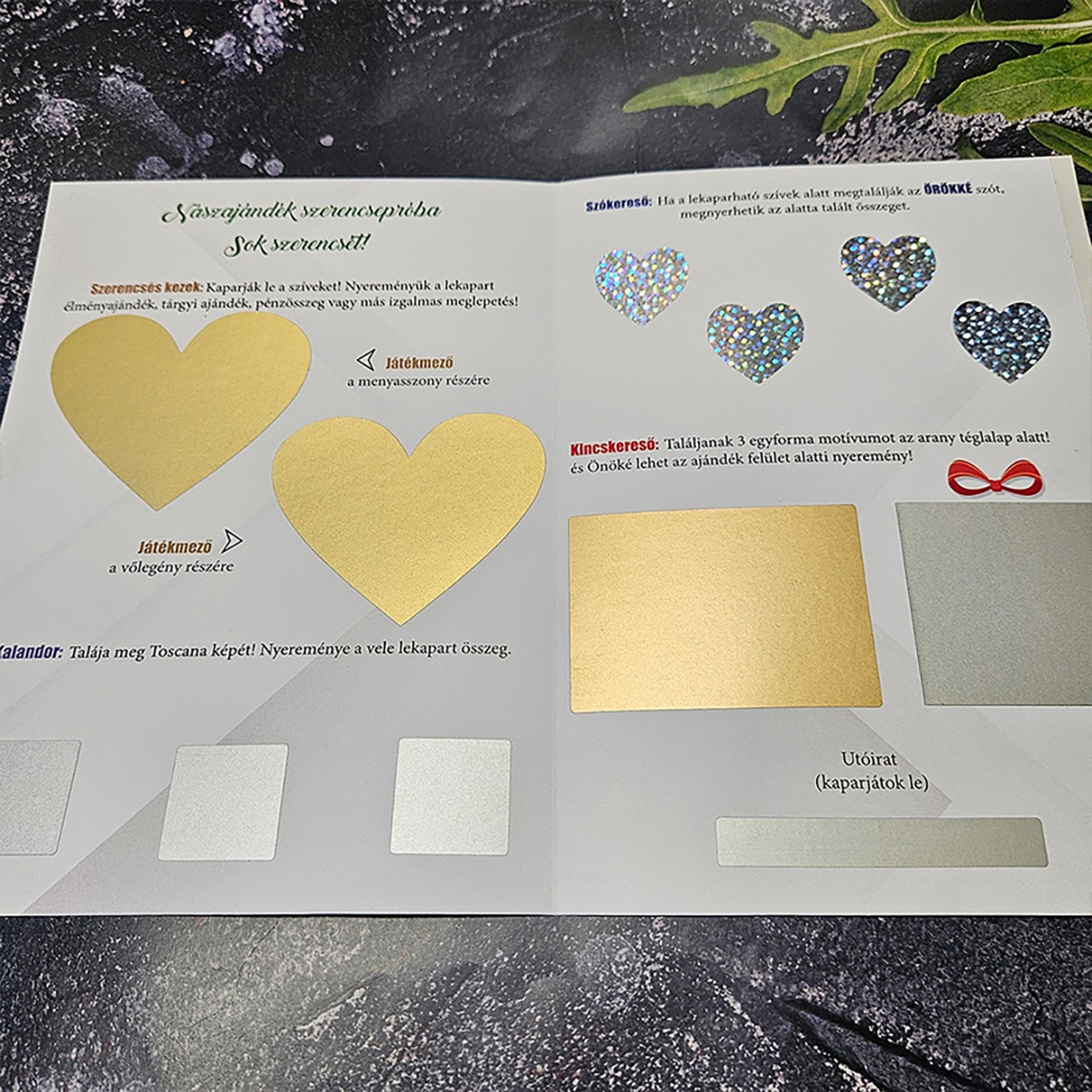 Felejtsd el az unalmas, fehér borítékokat! Ha valami igazán kreatívval rukkolnál elő egy esküvőn, kerek születésnapon vagy ballagáson, ez az A4-es méretű, kinyitható óriás sorsjegy lesz a legjobb választásod. Ez a különleges, kézzel készített technika és a valósághű kaparós felület kombinációja – olyasmi, amit csak nálunk találsz meg! 🎫✨