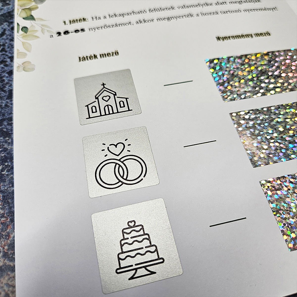 Mindent Te döntesz el! 🎨 Mivel grafikusként minden darabot egyedileg készítünk, a színek, nevek és grafikák teljesen passzolnak majd az alkalomhoz. A sorsjegy speciális, valósághű technikával készül, akár egyedi ikonokkal a kaparós felület alatt is!