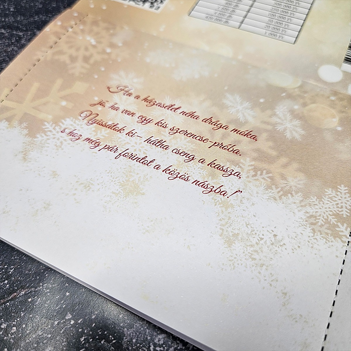 • 📸 Személyes hátoldal: Kérhetsz rá hagyományos nyereménytáblázatot a valódi hatásért, vagy egy közös fotót, idézetet és jókívánságokat is.