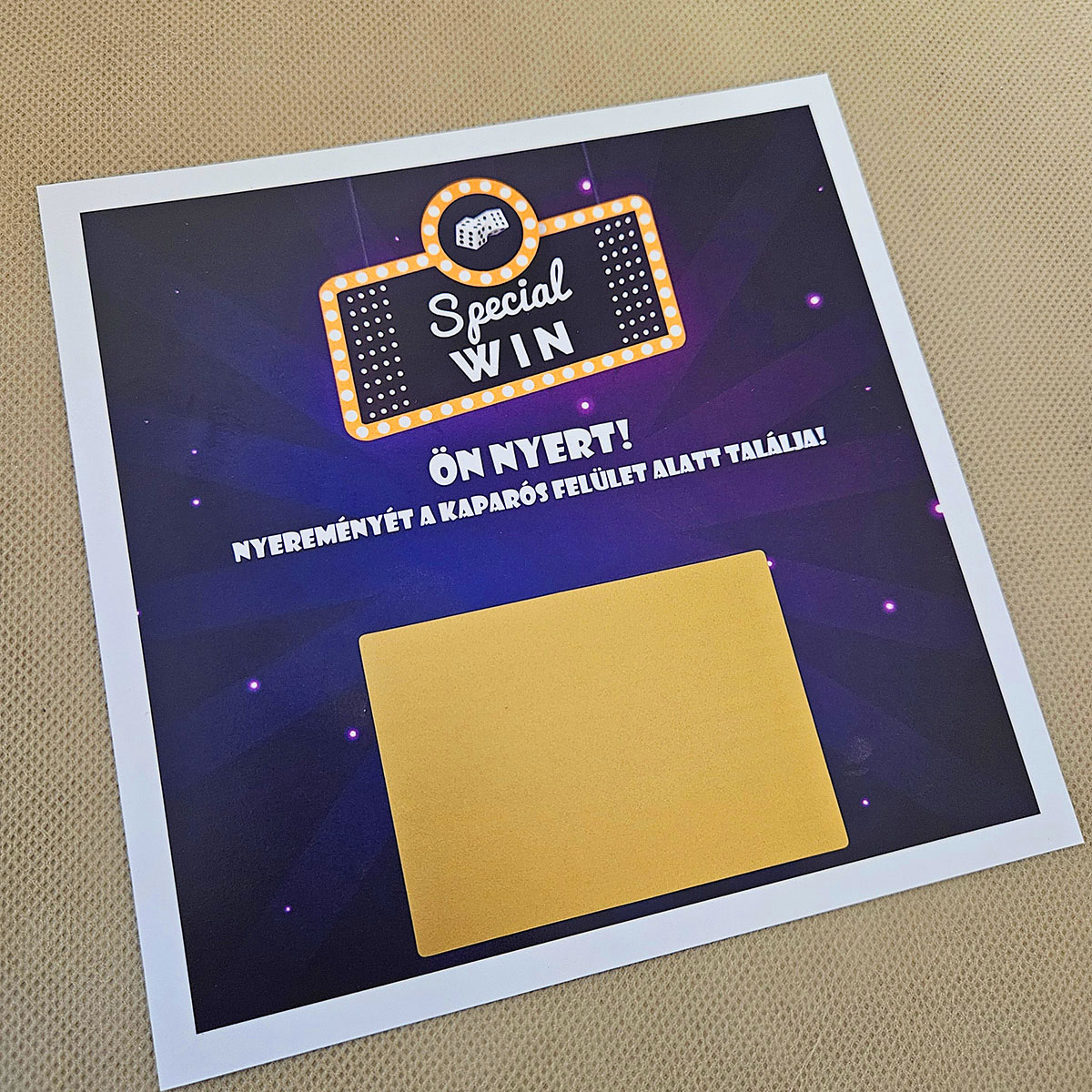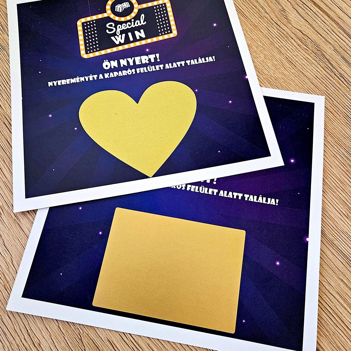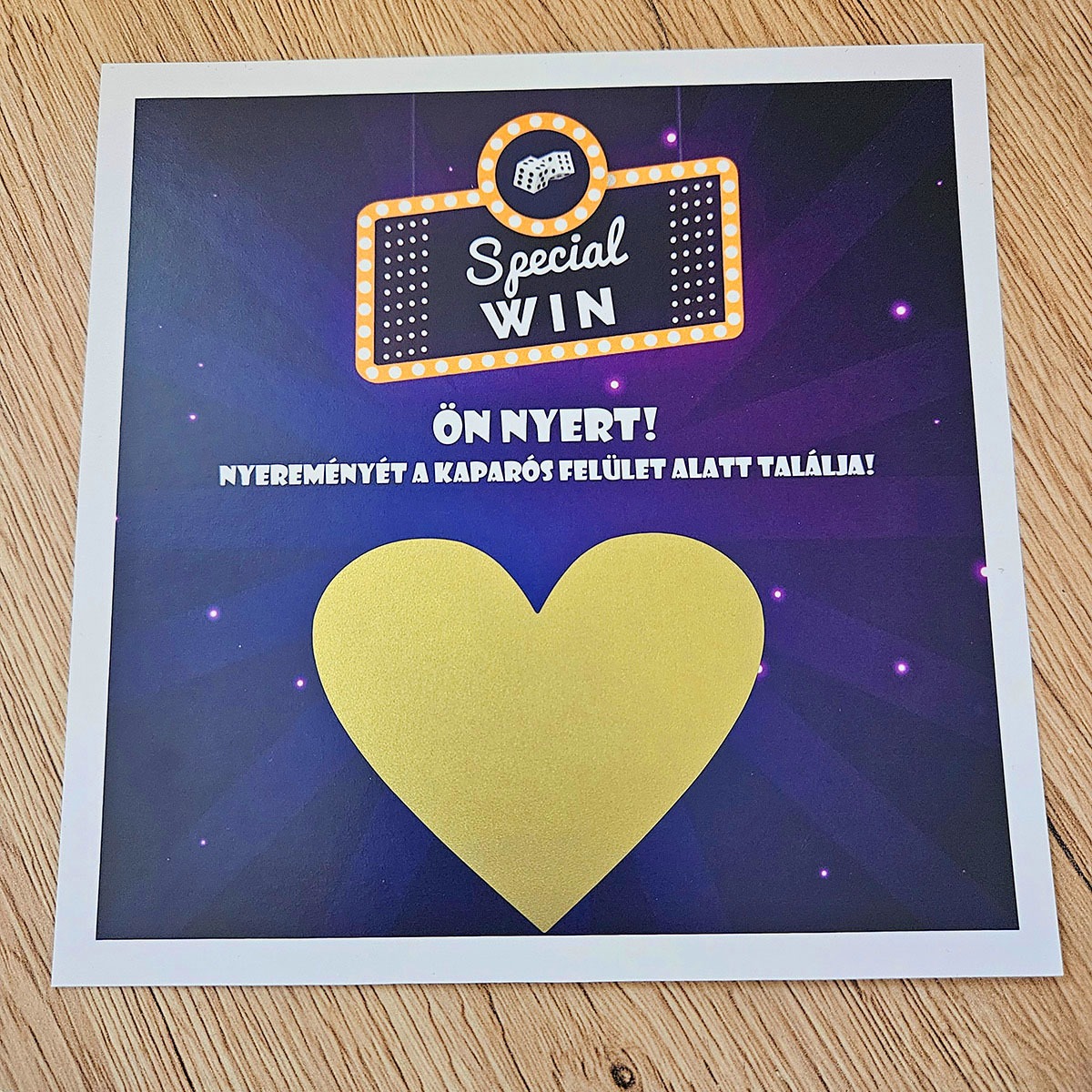 ✨ Ki ne szeretne kapargatni, pláne ha tudja, hogy a végén biztosan nyert? A Special WIN egyedi kaparós sorsjegy ajándék egy olyan speciális kiadás, amely az egyszerűségével és eleganciájával hódít. Ez nem egy tucattermék: minden egyes darab a Te egyedi kéréseid alapján készül el, így válik belőle életre szóló emlék.