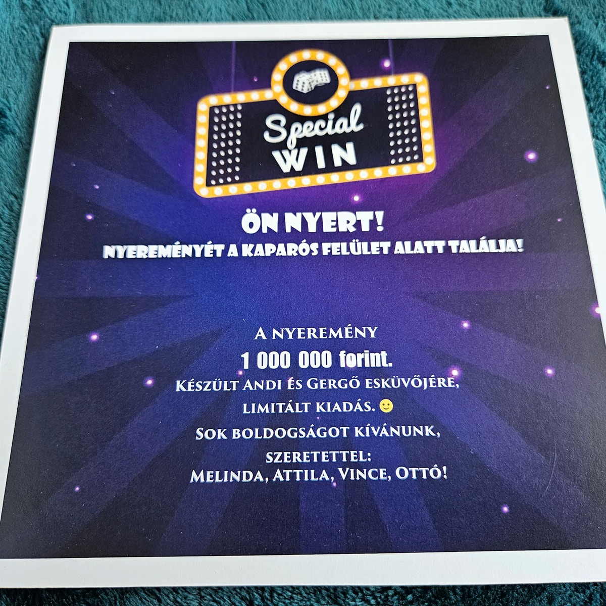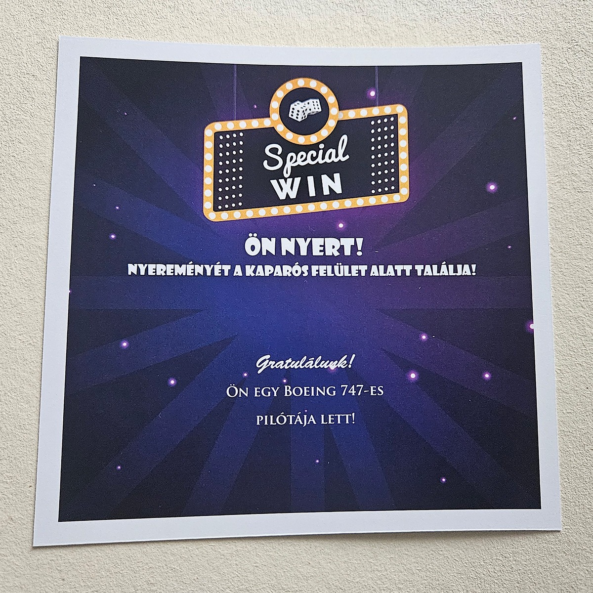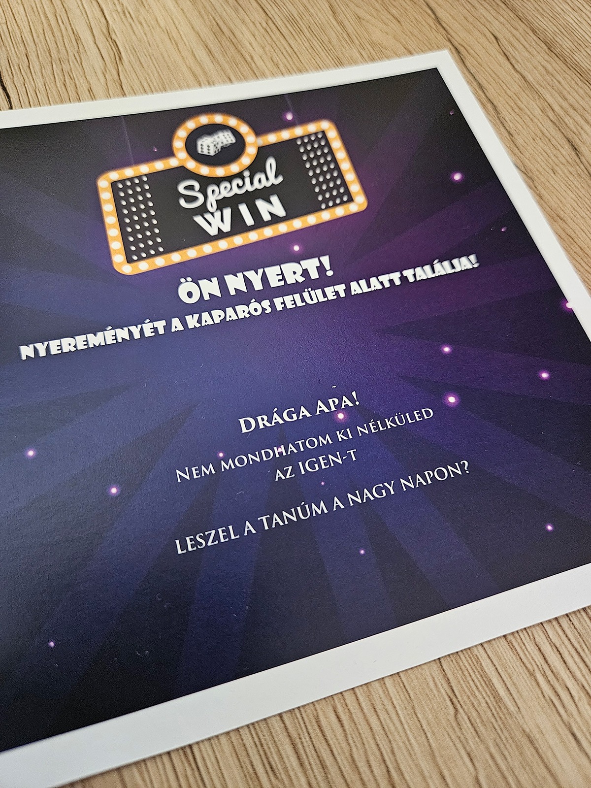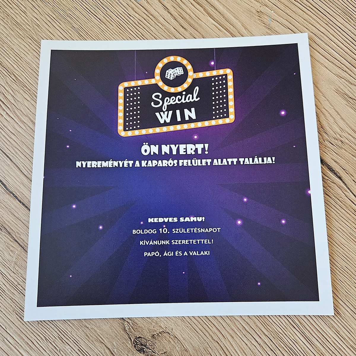 ✨ Ki ne szeretne kapargatni, pláne ha tudja, hogy a végén biztosan nyert? A Special WIN egyedi kaparós sorsjegy ajándék egy olyan speciális kiadás, amely az egyszerűségével és eleganciájával hódít. Ez nem egy tucattermék: minden egyes darab a Te egyedi kéréseid alapján készül el, így válik belőle életre szóló emlék.
