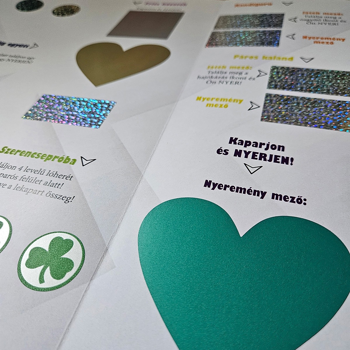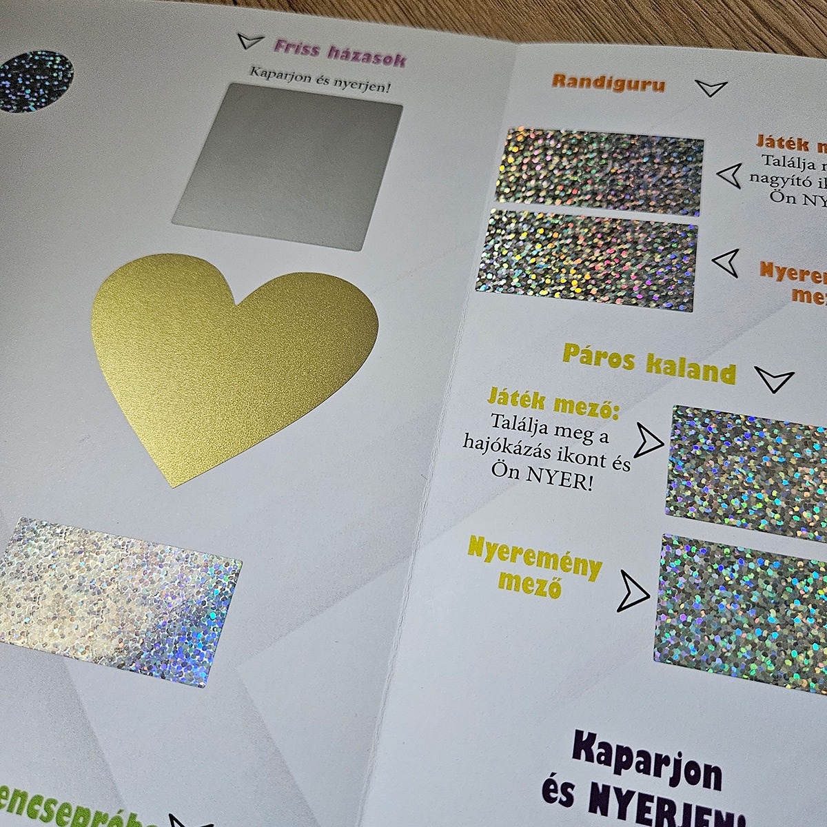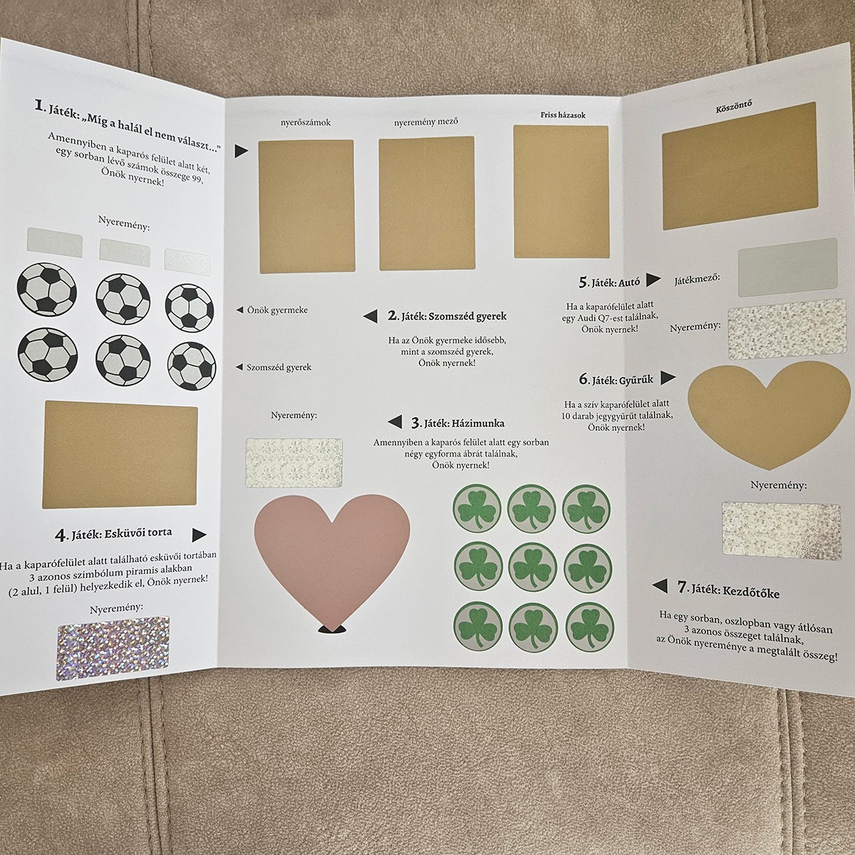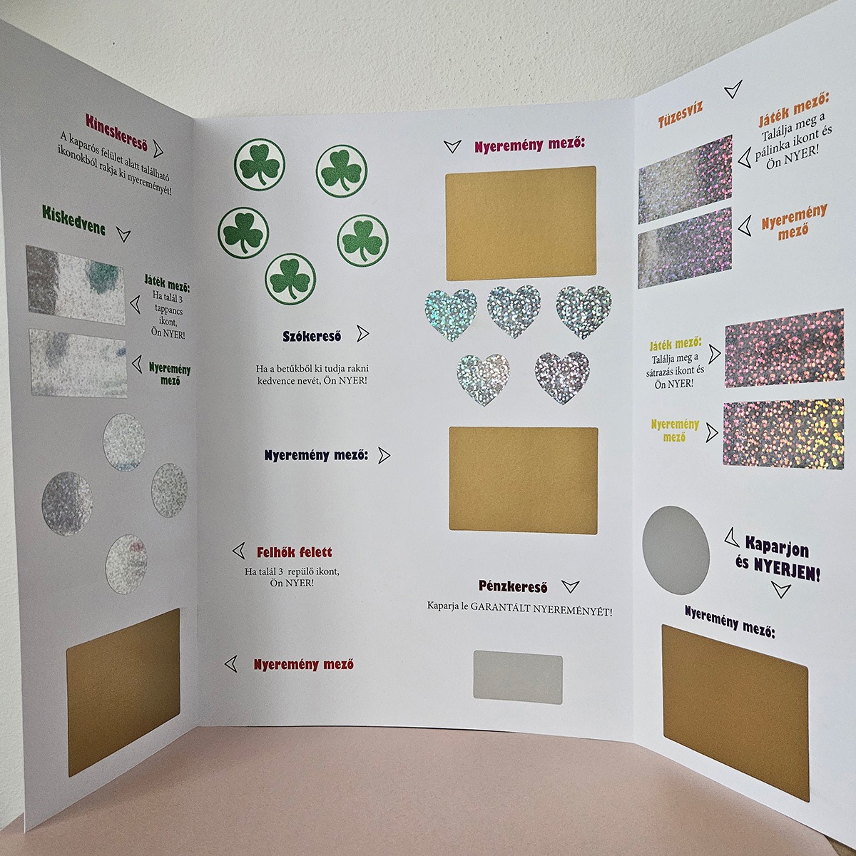 Változatos játékmenet: Akár 5-7 különböző “kaparós zónát, feladványt” is kialakíthatunk, nyerő és nem nyerő mezőkkel a maximális adrenalin érdekében! ⚡