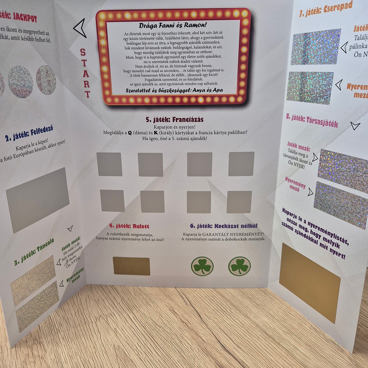 Unod a borítékba rejtett pénzt? Szeretnél valami olyat adni, ami percekig tartó izgalmat és maradandó emléket okoz? Az XXL óriás egyedi kaparós sorsjegy a kínálatunk legnagyobb tagja, amit kifejezetten a grandiózus meglepetésekhez terveztünk! 🎁🔥